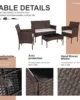 Enhance your outdoor living space with this elegant 4-piece patio furniture set, designed for comfort and durability. Made from high-quality wicker rattan, it withstands various weather conditions while maintaining its stylish appearance. The set includes two chairs, a loveseat, and a coffee table, perfect for creating a cozy conversation area on your porch, in the yard, or by the poolside. Key Features: – **Durable Construction**: Crafted from sturdy wicker rattan materials that resist fading and wear, ensuring long-lasting use outdoors. – **Comfortable Design**: Padded cushions provide extra comfort for relaxing or entertaining guests in style. – **Versatile Use**: Ideal for multiple outdoor settings such as patios, gardens, decks, or pool areas to enhance your leisure time. – **Easy Assembly**: Comes with clear instructions and necessary tools for quick setup without professional help. – **Space-Saving Layout**: Compact design fits well in smaller spaces while offering ample seating and surface area. This furniture set combines functionality with aesthetic appeal in a rich brown finish that complements various outdoor decors. It’s an excellent choice for homeowners looking to upgrade their outdoor entertainment areas affordably. Enjoy quality time with family and friends surrounded by durable and attractive furnishings.