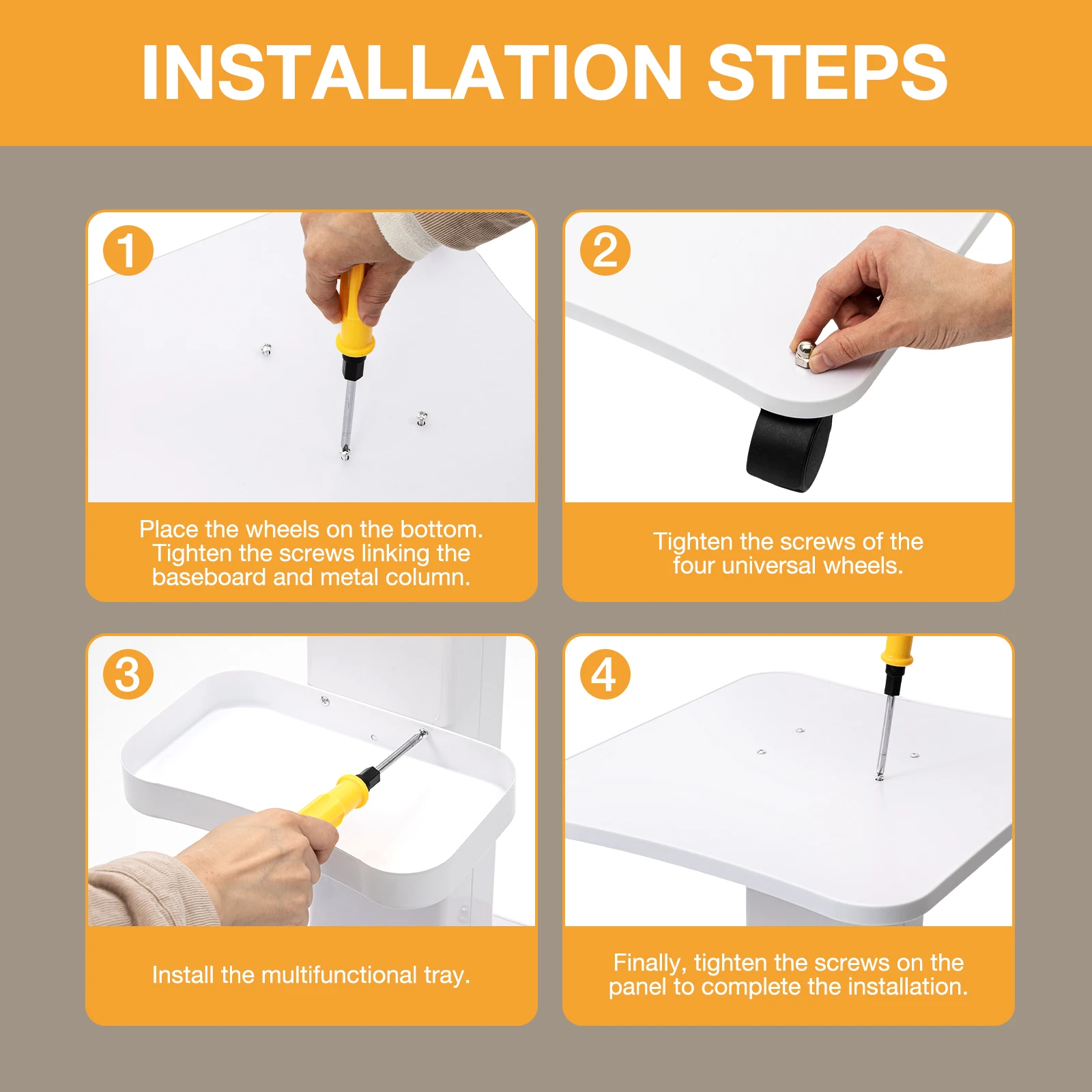 Easy to Assemble: The simple structure of the cart makes it easy to install. And we provide you with a complete set of parts and tools. You can use the tools to assemble it easily.