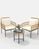 The set’s versatility and functionality are further enhanced by the inclusion of a glass table, which offers a sleek surface perfect for placing drinks and snacks. Its compact 3-piece configuration is ideal for smaller spaces, allowing for easy arrangement and use without compromising on style or functionality.