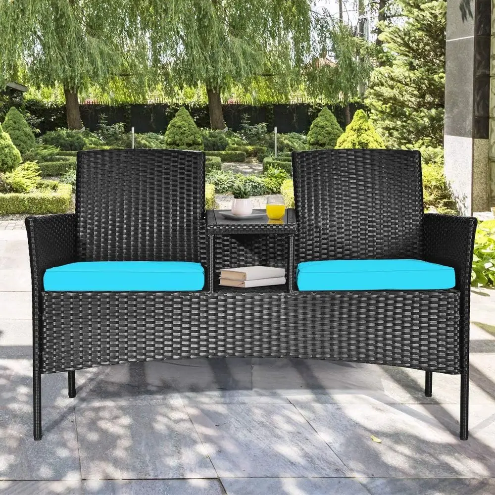 Suitable for outdoor use, this patio conversation set features a sturdy steel frame that is durable and stable for long-term use. Reinforced seats and a durable base enhance load-bearing capacity. Covered with weather-resistant and fade-resistant PE rattan, this patio set is well-suited for outdoor environments.