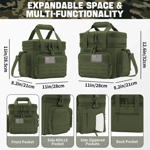 • Tactical Lunch Box Expandable Heavy Duty Tactical Leak Proof Insulated Cooler Bag For Outdoor Activities Camping MOLLE WebbingNew